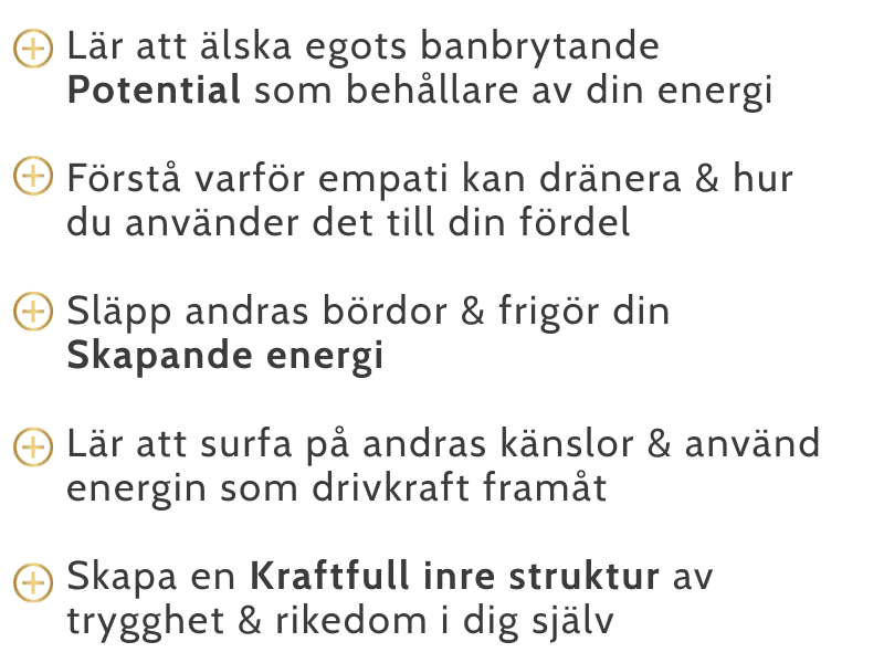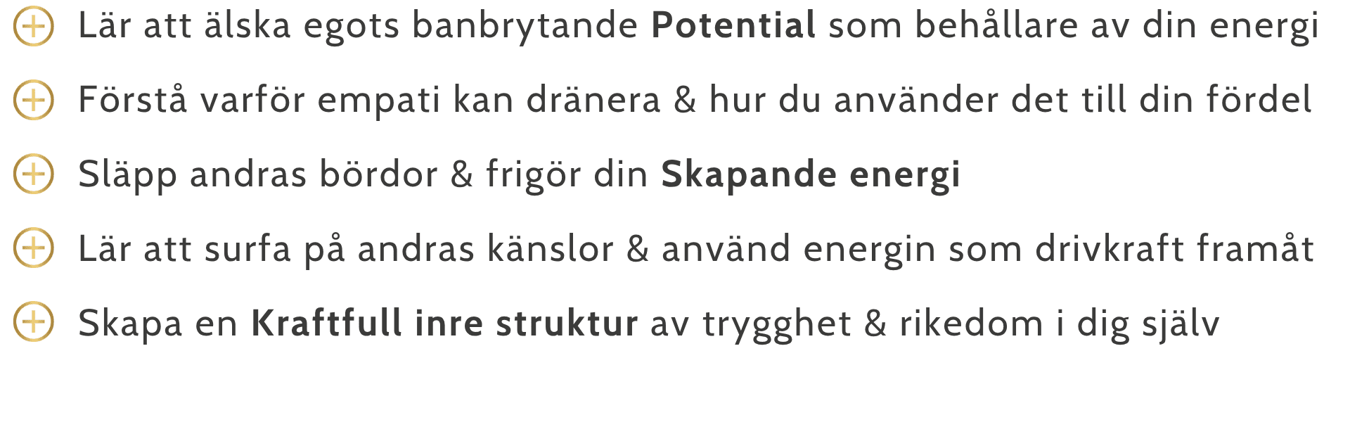 Om något i dig dras hit – lyssna. Det finns en anledning. Du kanske inte kan sätta ord på exakt vad du söker, men du känner att det är dags att släppa gamla mönster, att kliva fram, att få klarhet och mer energi. Då är det här kursen för dig.